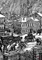 На Тверской всё смешалось: богатые дворцы соседствуют с бедными лачугами. Прямо как сейчас. Так ничего и не изменилось. А рядом с монастырями модные магазины. Стрекочут галки в высоте и помпезные львы на воротах.
