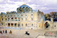 Мы видим Москву глазами Татьяны Лариной. Вот она въезжает в столицу. Что она видит? Петровский замок. В нём Наполеон прятался от пожара. В глаза бросаются златоглавые луковки церквей. А их в Москве было более двух сот. Да ещё и два десятка монастырей.