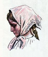 “. Вот однажды пробиралась она по двору, осторожно поднимая на растопыренных пальцах накрахмаленную барынину кофту. “